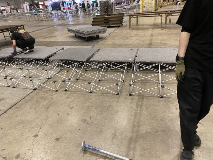 先日、簡単ステージの設営に行ってまいりました!アカンドゥです!