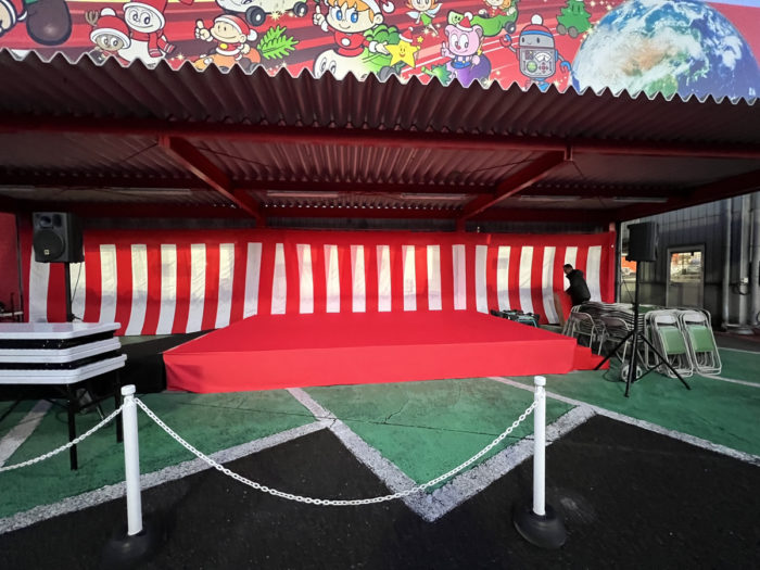 紅白幕と赤いステージスカートで遠目からでも視認性抜群です♪