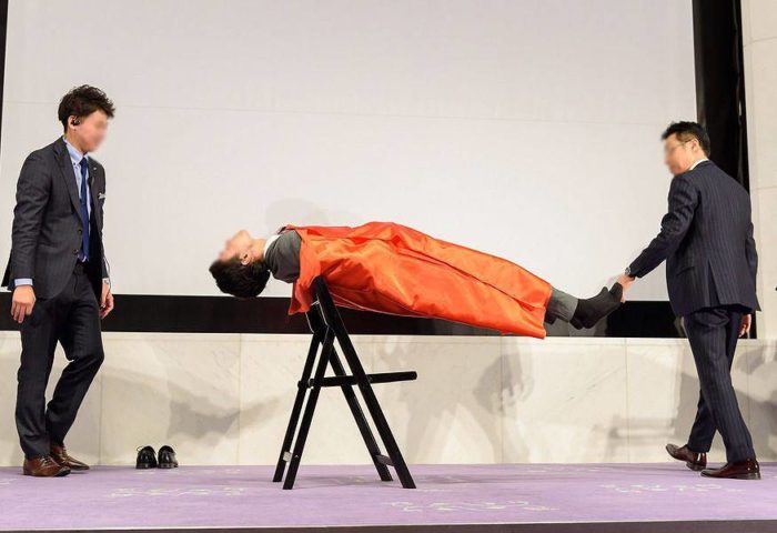 人体浮遊チェア 支えがなくなったのに浮いてる!?と誰もが一度は驚いたマジックです。