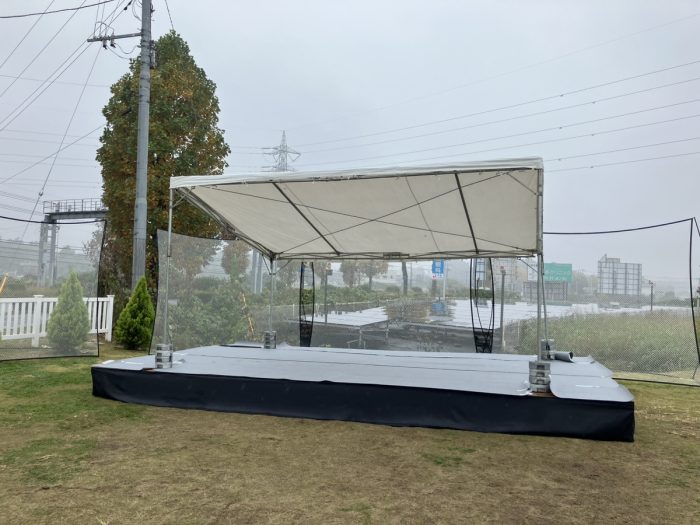 ステージテントがあれば突然の雨も機材が濡れなくて安心です!