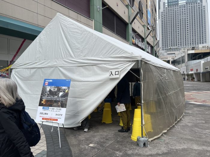 本日は、テント内で防災意識の向上を目的とした映像を上映するための