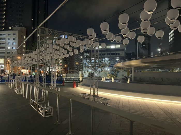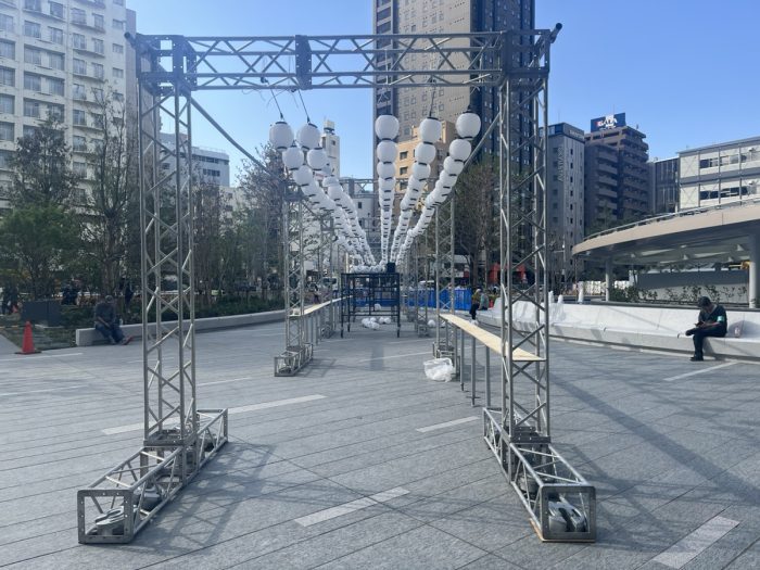 例えばトラスの高さをもう少し高くして、カラフルなビニール傘を吊るして