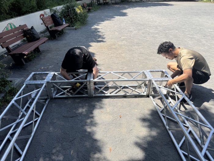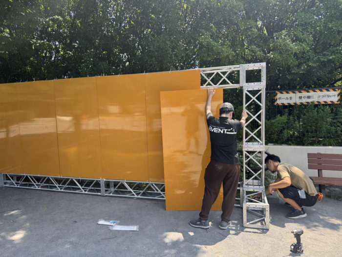 弊社スタッフが日夜、頑張って制作、設営しています。