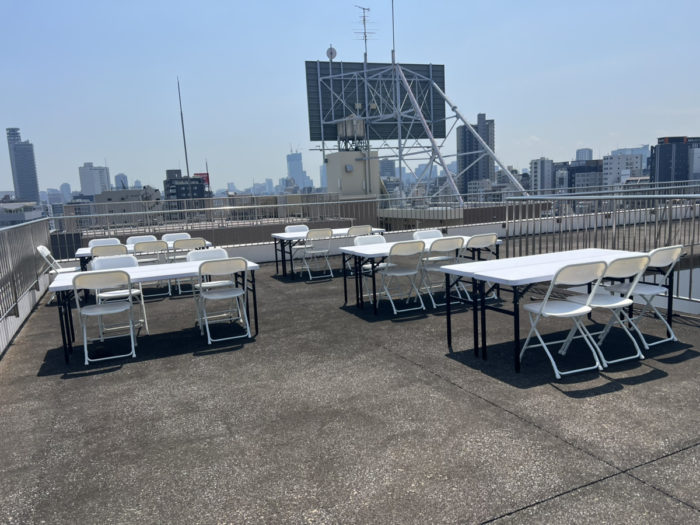 本日はビルの屋上で、飲食スペースを設営してまいりましたのでご紹介です♪