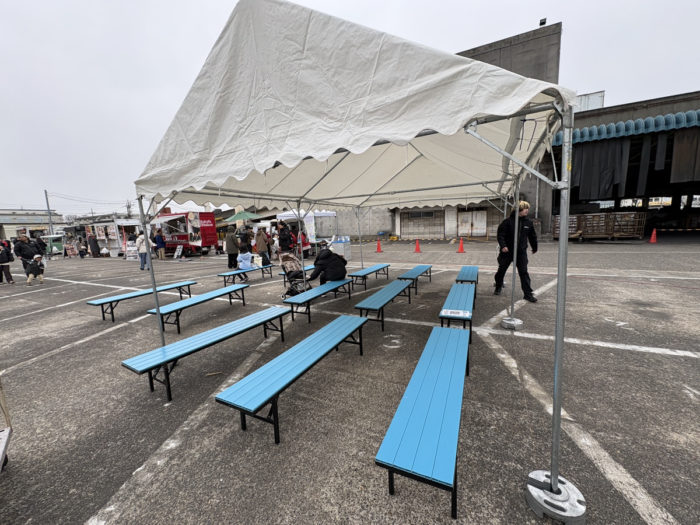 マルシェや飲食イベントで、歩き疲れたりご飯を食べたりするスペースって