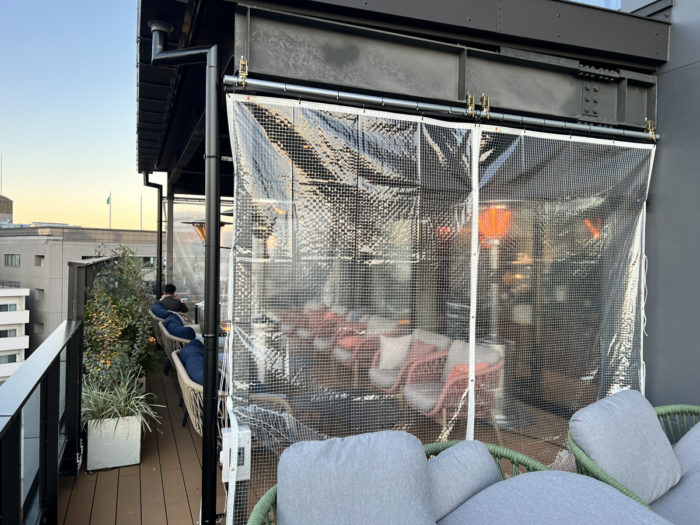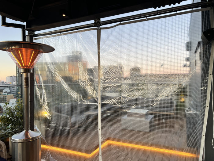 風よけに透明横幕カーテンいかがでしょうか。