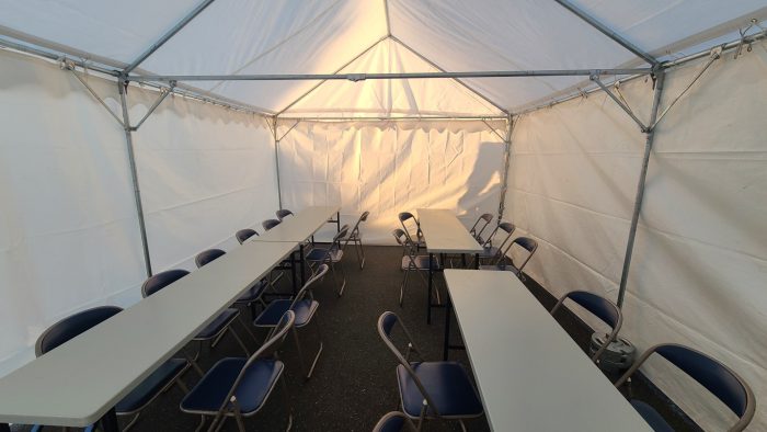 出し物に受付、休憩所に飲食スペースなど、多用途にご利用いただく テント ですが