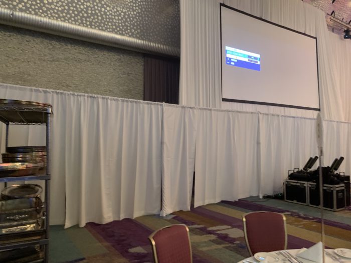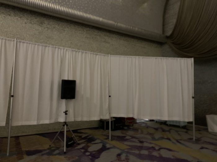 隠したい機材や通用口は 間仕切りカーテン&ポール がおすすめです♪
